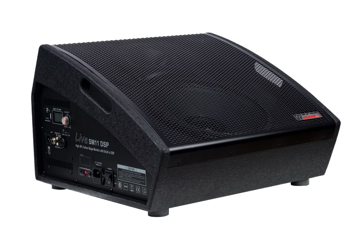 Monitor de palco amplificado de alta eficiência, altifalante 10”. potência 350w+100w RMS/ 900w Max, SPL 130db, dimensões 46x46x29. peso 6kg.