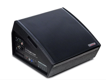Monitor de palco amplificado de alta eficiência, altifalante 12”. potência 450w+100w RMS/ 1200w Max, SPL 130db, dimensões 46x50x32. peso 18kg.