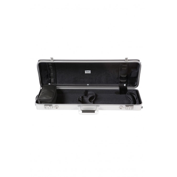 Estojo para violino da série Hightech. Estrutura tripla Hightech: ABS, Airex e ABS, duas alças antiderrapantes de neoprene com mosquetões de segurança, duas fechaduras com chave, alça lateral confortável, pés de borracha antiderrapantes. Parte superior em pele, parte inferior em alumínio escovado. O instrumento fica totalmente suspenso no seu interior em almofadas de espuma. 4 Suportes para arco, correia para almofada tipo Kun. Bolsa interior extraível .