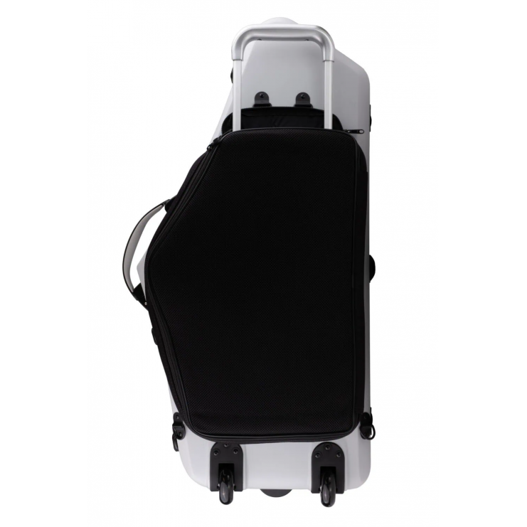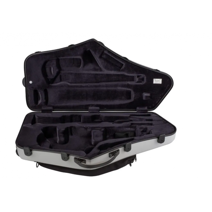 Estojo para saxofone Alto e Soprano da série Hightech. Modelado a partir do saxofone Alto Selmer Mark 6 e do soprano Series 3 (tudel fixo). Estrutura tripla Hightech: ABS, Airex e ABS. Duas correias acolchoadas tipo mochila e extraíveis, troley, asa lateral, duas fechaduras com chave, bolso externo. Interior em espuma de alta densidade compartimentos para boquilhas e tudel.