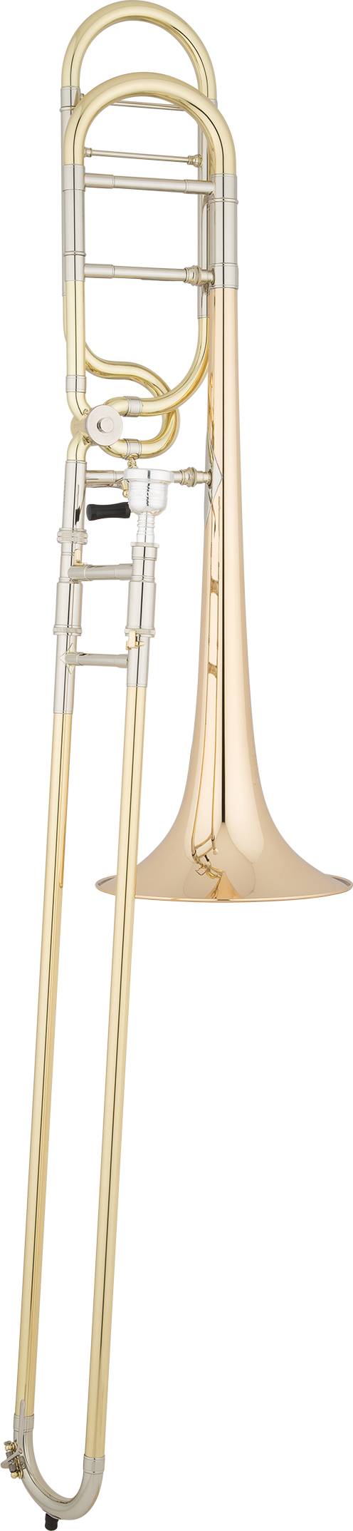 Trombone tenor profissional. Trombone em Sib. Campânula de 215mm em yellow brass. Acabamento lacado dourado. Inclui estojo deluxe com alças tipo mochila.