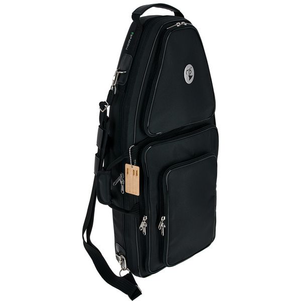 O estojo tem uma bolsa para partituras e acessórios que é fixada por meio de fechos de correr, e inclui também um bolso superior frontal adicional para acomodar o estojo para 2 tudéis.