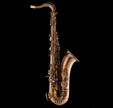 Saxofone Tenor “Vintage Bronze&rdquo, chave F# agudo, suporte duplo nas chaves mais graves, gravado, lacado.