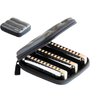 Harmónica profissional diatónica de 20 vozes. Tonalidade em Dó (C). Pente em resina sólida com madeira (tecnologia avançada). Cobertura em aço inoxidável polido. Palhetas em bronze fosforos substituíveis. Estojo incluído.