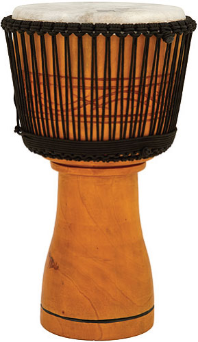 Série Master. Diâmetro 13”, altura 26”. , esculpido à mão a partir de uma peça +unica de madeira de Mogno de plantação controlada. Maior registo tonal, com agudos e graves mais ricos. Corda Alpine de elasticidade baixa e centro traçado que produz som grave e rico, e afinação estável na pele de cabra. Inclui saco acolchoado.