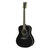 Guitarra acústica Dreadnought com tampo abeto (Engelmann) maciço A.R.E., ilhargas e costas pau santo maciço, marcações: Abalone, braço mogno/pau santo de 5 camadas, escala ébano - 650mm, Pickup Piezo passivo, afinadores Yamaha dourados, acabamento black brilhante.