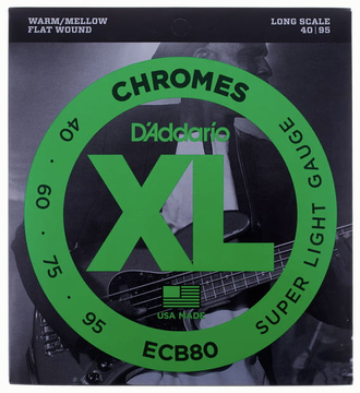 Jogo para baixo elétrico de 4 cordas. Material: cromado. Calibre: 40 - 060 - 075 - 095