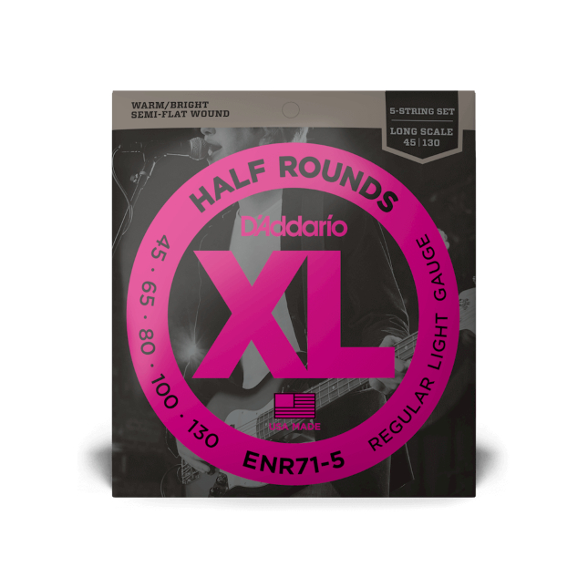 Jogo de 5 cordas de baixo elétrico. Escala Longa. Tensão Light. Cordas niqueladas. Calibre: 045, 065, 080, 100, 130.