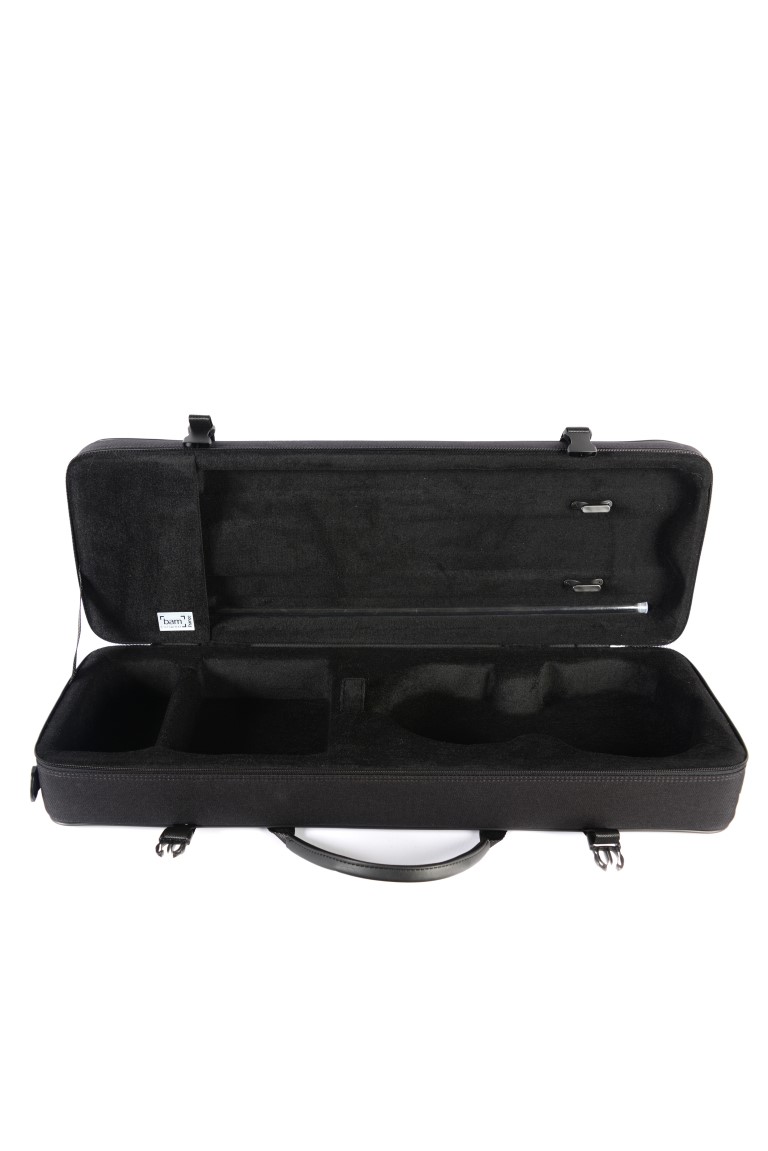 Estojo de violino rectangular e poliamida impermeável. Bolso para partituras e outro bolso para acessorios. Cor preta
