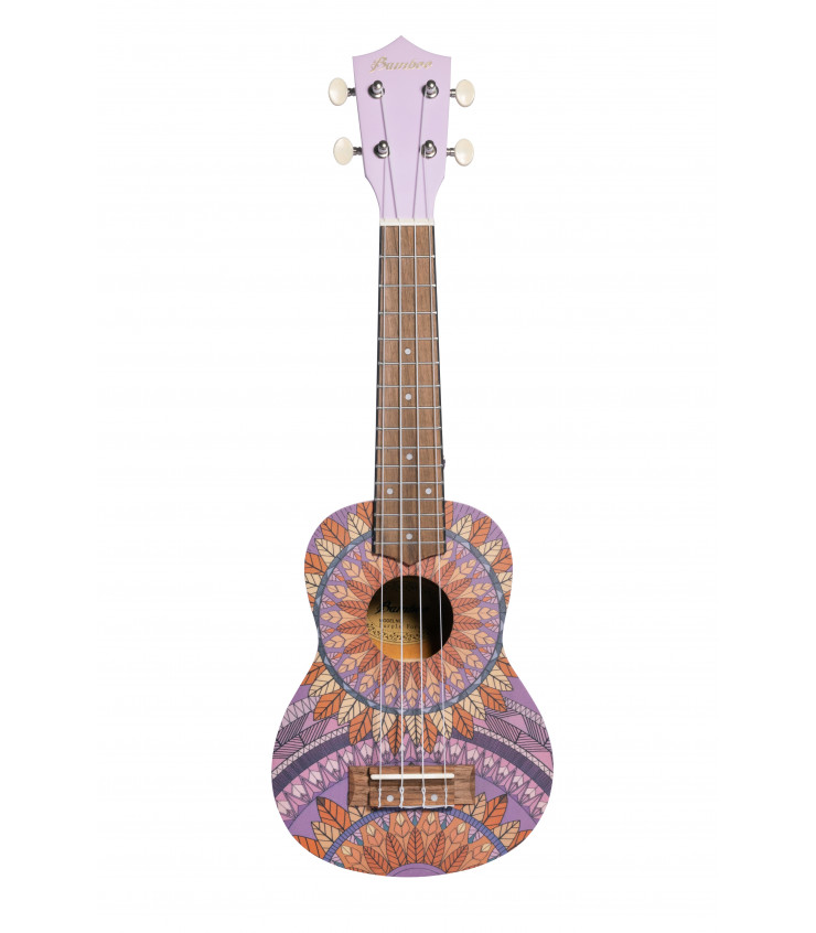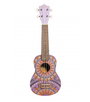 Ukulele Soprano Purple Forest. Corpo em tília. Escala e ponte em nogueira. Cordas Aquila. Inclui saco.