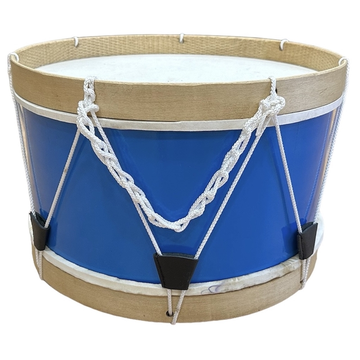 Bombo tradicional em madeira, pintado em branco e cor, corda de nylon, pele natural de cabra, inclui 1 maceta. Fabrico nacional. Outras cores por encomenda.