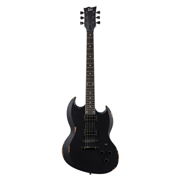 Guitarra de assinatura Lars Frederiksen, com corpo em Mogno, braço de 3 peças em Mogno colado com perfil fino em U, escala em Ébano Macassar com marcações laterais de 24,75? com 24 trastes XJ, carrilhões Gotoh, Ponte Tonepros Locking TOM, pickups passivos Seymour Duncan Lars Frederiksen Signature, hardware negro niquelado, acabamento Distressed Black Satin. Estojo Form Fit VIPER incluído.