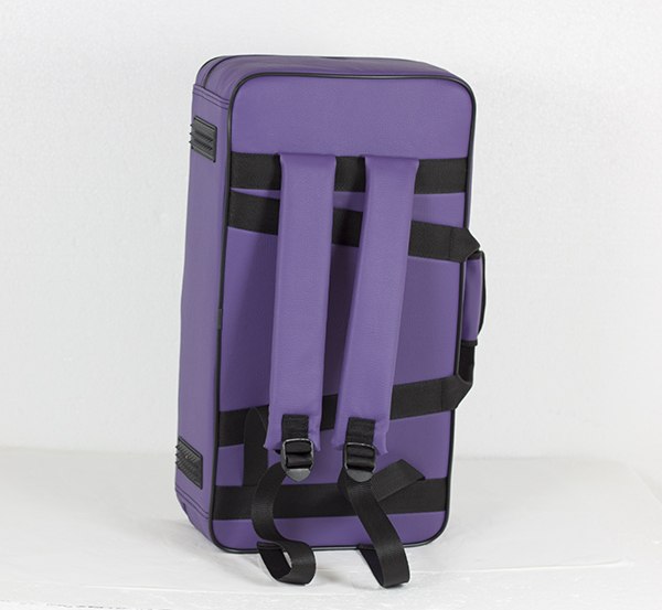 Estojo para trompete , retangular. Exterior em pele sintética. Interior almofadado de poliuretano, em veludo. Com bolso exterior para partituras. Alsas tipo mochila e duas alsas laterais. Dimensões: 55,5x29x15,5cm. Peso: 2,6Kg.