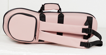 Estojo para trompete , de forma. Exterior em pele sintética. Interior almofadado de poliuretano, em veludo. Alsas tipo mochila e duas alsas laterais. Dimensões: 62x20x17cm. Peso: 2,22Kg.