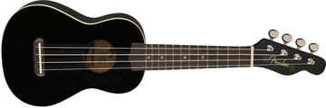 Ukulele soprano, tampo e corpo em basswood laminada, acabamento preto mate.