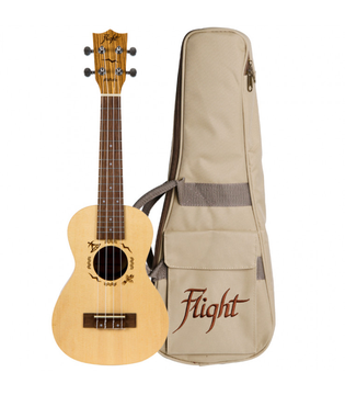 Ukulele Concerto. Lados e fundo em Zebrawood laminada. Tampo em abeto maciço. Braço em Okoumé africano. Ponte e escala em nogueira. Cordas Aquila Super Nylgut. Inclui saco almofadado.