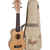 Ukulele Soprano. Lados e fundo em Zebrawood laminada. Tampo em abeto laminado. Braço em Okoumé africano. Ponte e escala em nogueira. Inclui saco.