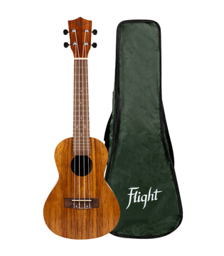 Ukulele Concerto. Corpo em teca laminada. Braço em Meranti. Ponte e escala em Nandu. Cordas Flight. Inlcui saco.