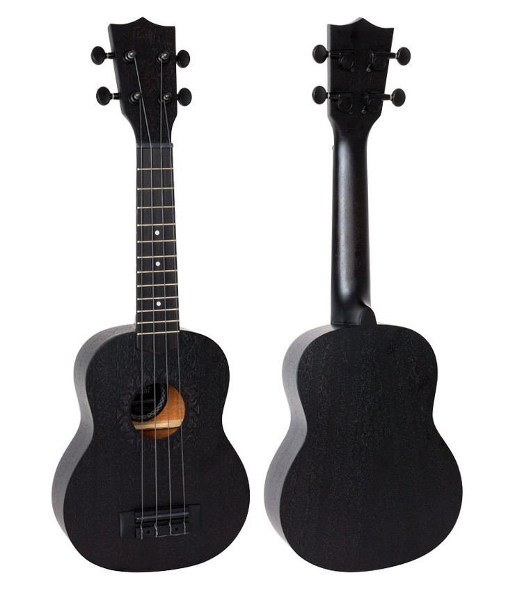 Ukulele Soprano. Corpo em Sapele Africano laminado. Braço em Okoumé Africano. Ponte em nogueira. Escala em compósito de madeira. Cordas Black Flight Nylon. Inclui estojo.