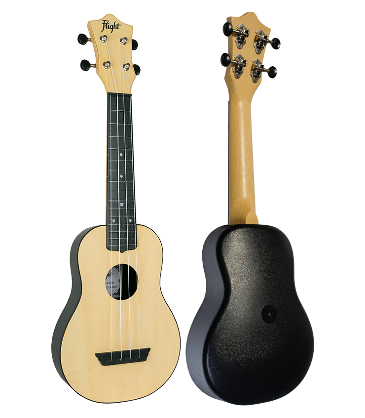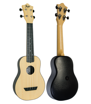 Ukulele Soprano, Travel Series. Corpo em ABS. Tampo em tília laminada. Escala e ponte em ABS. Cordas Aquila Nylgut. Inclui saco.