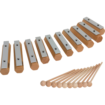 Conjunto de 10 barras de carrilhão, madeira de faia, placas de som em alumínio, c2 - c3, F#2 + Bb2, 10 batedores de madeira