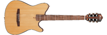 Guitarra acústica eletrificada. Corpo em Sapele. Tampo em abeto sitka maciço. Braço C em Nyatoh. Ponte e escala em nogueira. Carrilhões dourados. Cordas D’Addario XTC45. Pickup Ibanez T-bar Undersaddle. Preamp Ibanez Custom Electronics. Acabamento natural mate.