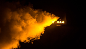 Com Leds de cor ambar para colorir a projeção do fumo.