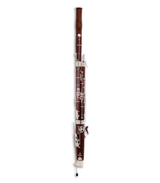 Fagote em dó nível de iniciação, corpo em madeira (Maple), chaves banhadas a prata, mecanismo de tamanho reduzido para mão pequenas, acabamento lacado.