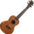 Ukulele Concerto com tampo em Sapelli maci?o, fundo, lados e bra?o em Sapelli. Escala e ponte em nogueira. Carrilh?es pretos acetinados. Acabamento acetinado com desenho Tiki Uku nas costas.