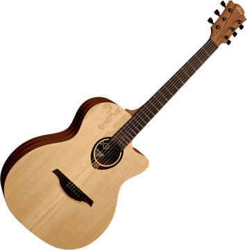 Guitarra acústica eletrificada com tampo maciço em abeto Engelmann, lados e fundo em Sapelli e braço em Okoume. Escala e ponte em Brownwood. Carrilhões pretos acetinados. Preamp DirectLag GT2 com eq de 3 bandas. Acabamento brilhante.