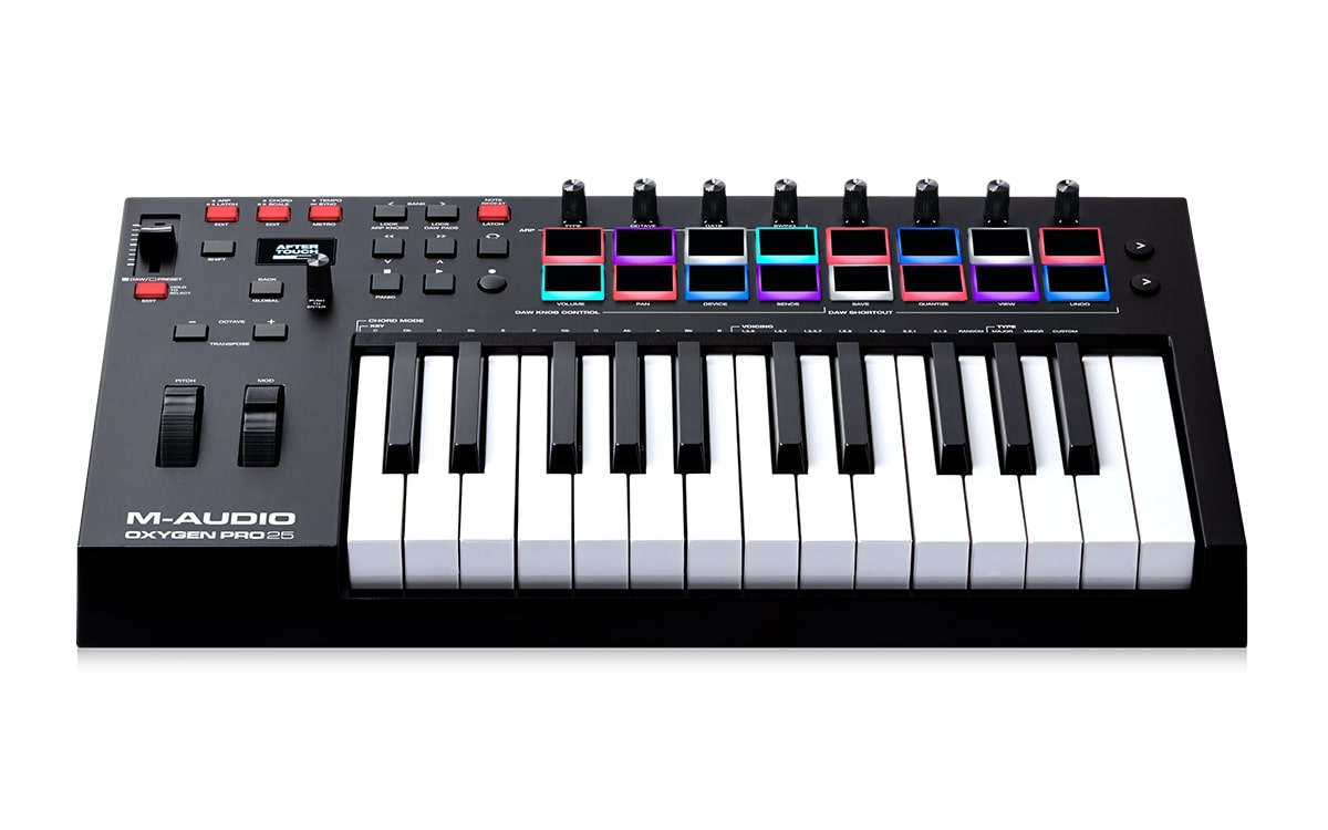 Teclado controlador MIDI de 25 teclas semi-pesadas. 16 pads RGB, sensíveis à velocidade com função “Note Repeat”. 8 controlos para instrumentos virtuais, mix plugins e controlos DAW. 9 faders para controlor instrumentos virtuais, plugins e faders DAW. Software Incluído: Pro Tools, MPC Beats, Ableton Live Lite, Hybrid 3.0, Velvet, Mini Grand, Vacuum, Boom, DB-33 Tonewheel Organ. Dimensões: 264,1x490,2x83,3mm. Peso: 2,46kg.