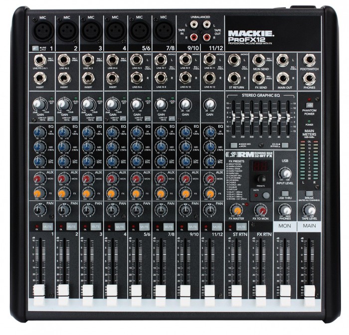 Mesa de mistura com 12 canais (6 para microfone com prés Classe A Mackie VITA), 4 subgrupos, processador ReadyFX com 16 efeitos, 2 auxiliares, equalizador 7 bandas, interface USB incorporado.
