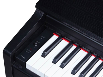 Apresentamos o Medeli UP82, um piano digital de entrada de gama distinto que reforça o legado do UP81 com melhorias significativas tanto na estética como na saída de áudio. Este modelo apresenta um acabamento melhorado, assegurando não só uma aparência elegante e moderna, mas também um toque de artesanato refinado que eleva a sua presença em qualquer ambiente. Com um amplificador que foi atualizado para fornecer 25% mais potência, o UP82 proporciona um som mais rico e ressonante, tornando cada atuação mais cativante e envolvente. Esta atualização complementa as caraterísticas já impressionantes do piano, tais como um teclado de ação graduada (GAK) totalmente ponderado para uma experiência de reprodução autêntica e uma unidade de 3 pedais realista, tudo alojado numa potente caixa de som. O UP82 continua a suportar os elementos essenciais que tornaram o UP81 tão popular entre os músicos, incluindo a versátil conetividade USB-Áudio para gravação direta em telemóveis ou computadores, simplificando o processo criativo de compositores e artistas.