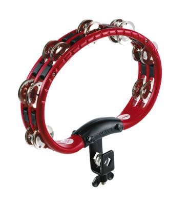 Pandeireta sem pele ABS com soalhas prateadas e sistema de montagem, Red.