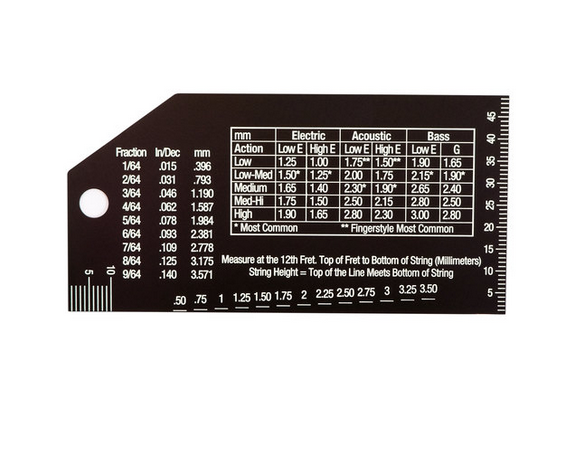 String Action Gauge para medir a acção no braço. Placa de fácil leitura para medir de forma simples a altura das cordas ou pickups.