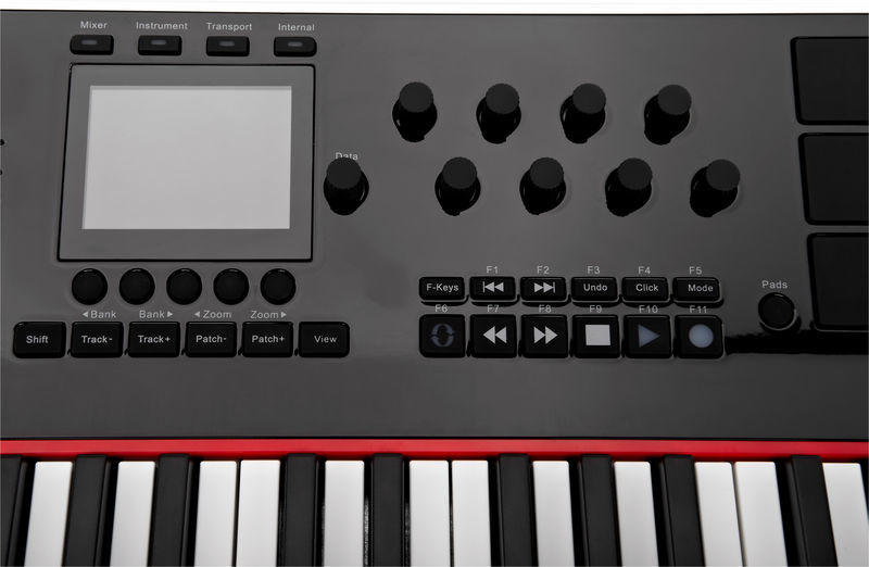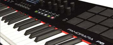 Teclado Controlador USB MIDI Panorama 61 teclas sensíveis à velocidade semi-pesadas com aftertouch 5 curvas de velocidade + fixas. 10 x Botões atribuíveis com LED. 12 x Pads sensíveis à velocidade e pressão
