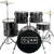 Set completo de bateria que inclui suportes, pratos, pedal, banco e baquetas. Bombo 22”x16”, timbalão agudo 10”x8”, timbalão médio 12”x9”, timbalão grave 16”x16”, tarola 14”x5,5”, prato choques 14”, crash/ride 16”.