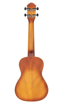 Ukulele concerto para esquerdino. Tampo, lados e fundo em Okoumé. Braço em mogno. Escala e ponte em nogueira. Carrilhões cromados. Cordas UWNY-4CC. Acabamento acetinado.