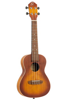 Ukulele concerto. Tampo, lados e fundo em Okoumé. Braço em mogno. Escala e ponte em nogueira. Carrilhões cromados. Cordas UWNY-4CC. Acabamento acetinado.