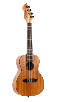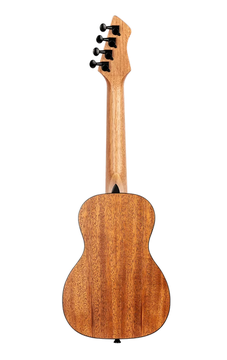 Ukulele concerto. Tampo, lados e fundo em mogno, poro aberto. Braço em Okoumé. Ponte e escala em tecwood. Carrilhões pretos. Cordas UWNY-4-CC.