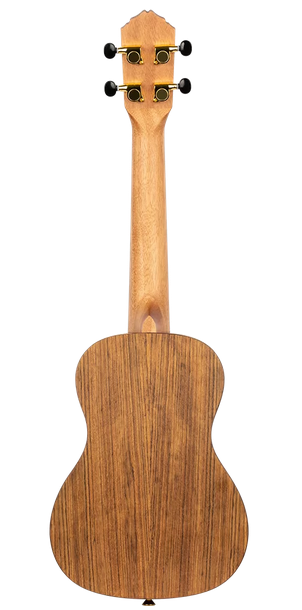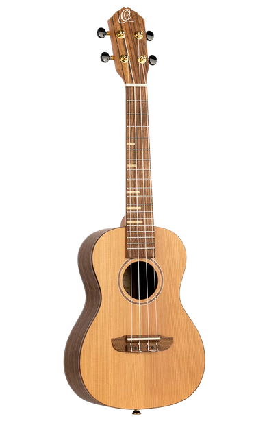 Ukulele Concerto. Corpo em Ovangkoll, tampo em cedo maciço e braço em Okoumé. Escala e ponte de nogueira. Acabamento natural acetinado. Carrilhões dourados. Cordas UWNY-4CC. Inclui saco deluxe.