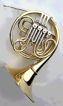 Trompa dupla, em Fa/Sib, completa, campanula desmontável, inclui estojo e bocal.