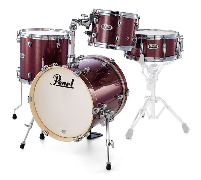 Bateria composta por bombo 16x14", tom tom 10x7, timbalão 13x12, tarola 13x5.5, suporte de timbalão suspenso e hardware de elevação do bombo, peles Remo UT e Remo Powerstroke 3 no bombo, cascos de 6 camadas de 7.5mm de Poplar, ferragens cromadas.
