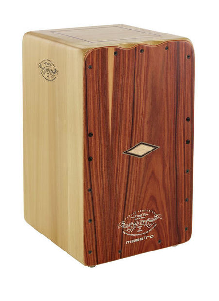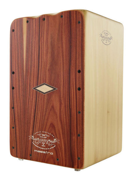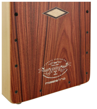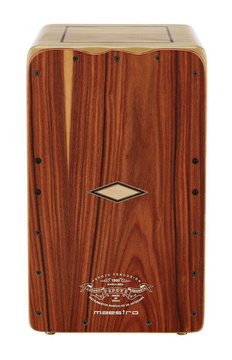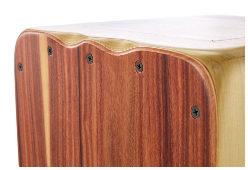 Cajon de gama profissional, em Ébano Rameado, 28.5x30x47, 10 bordões com afinação, independentes à esquerda e à direita.