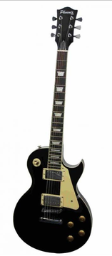 Guitarra elétrica, tipo Les Paul. Tampo em mogno maciço. Lados e fundo em mogno. Escala em maple. Carrilhões cromados. Truss Rod. 2 Controlos de volume, 2 Controlos de tom e seletor de 3 vias. Acabamento brilhante.