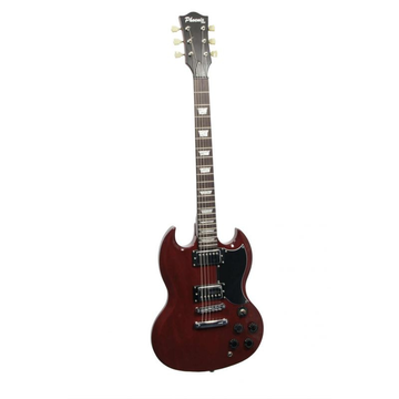 Guitarra elétrica, tipo SG. Tampo em mogno maciço. Lados e fundo em mogno. Escala em maple. Carrilhões cromados. Truss Rod. 2 Controlos de volume, 2 controlos de tom e seletor de 3 vias. Acabamento brilhante.