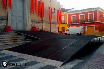A rampa é o complemento imprescindível para qualquer palco, pois permite o acesso a pessoas com mobilidade reduzida, eliminando qualquer barreira arquitetónica.