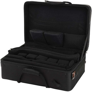 Estojo triplo Trompete, asa reforçada, com correia de ombro acolchoada, interior pode ser reconfigurado para acomodar os instrumentos, bolsa para armazenamento exterior, exterior resistente e impermeável.