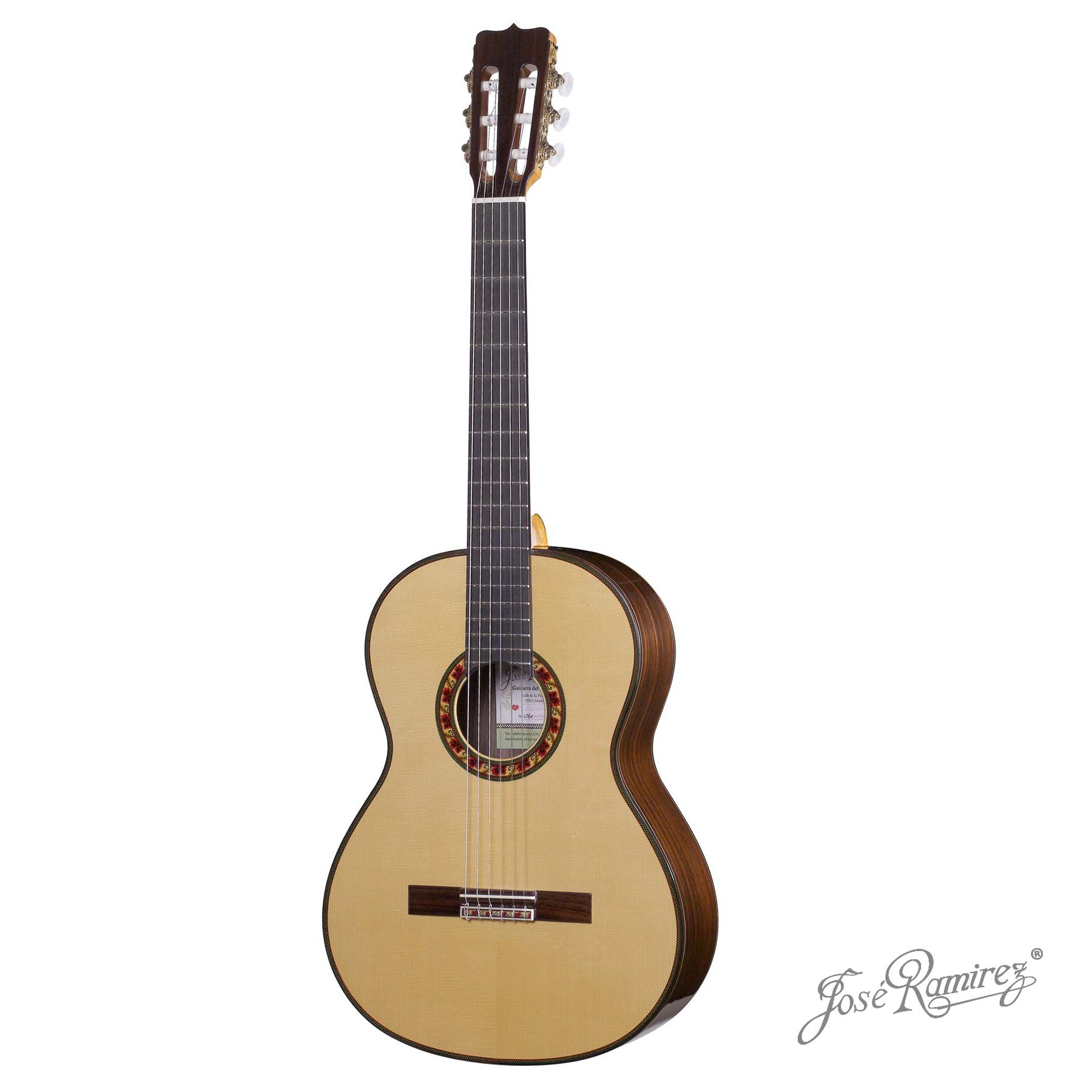 Guitarra clássica comemorativa dos 135 anos da casa José Ramirez, com tampo em Cedro Vermelho ou Abeto Alemão maciços, fundo e laterais em Pausanto da Índia maciço, escala em Ébano, braço em Cedro, ponte em Pausanto da Índia, verniz de polioretano, cordas Ramirez de tensão alta com 3o em carbono. Possibilidade de adicionar electrificação Fishman ou Schertler, ou instalar sistema Midi RMC.