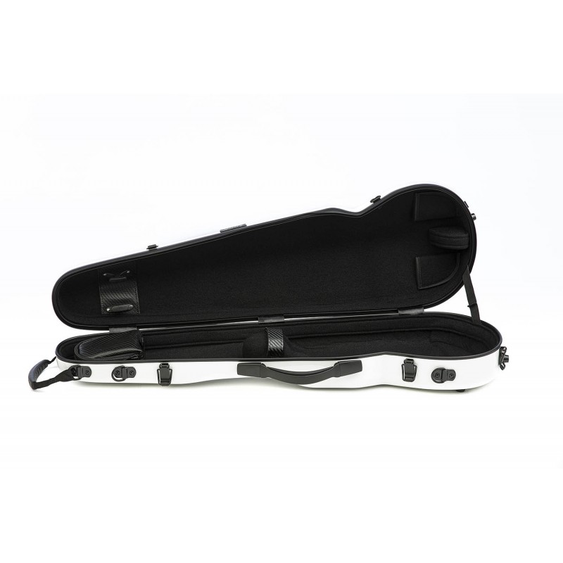 Estojo para violino 4/4. Estojo em compósito. Exterior em policarbonato. Interior em veludo. Asa lateral e mochilas. Espaço para 2 arcos. Compartimento para acessórios. Peso: 1,9kg.